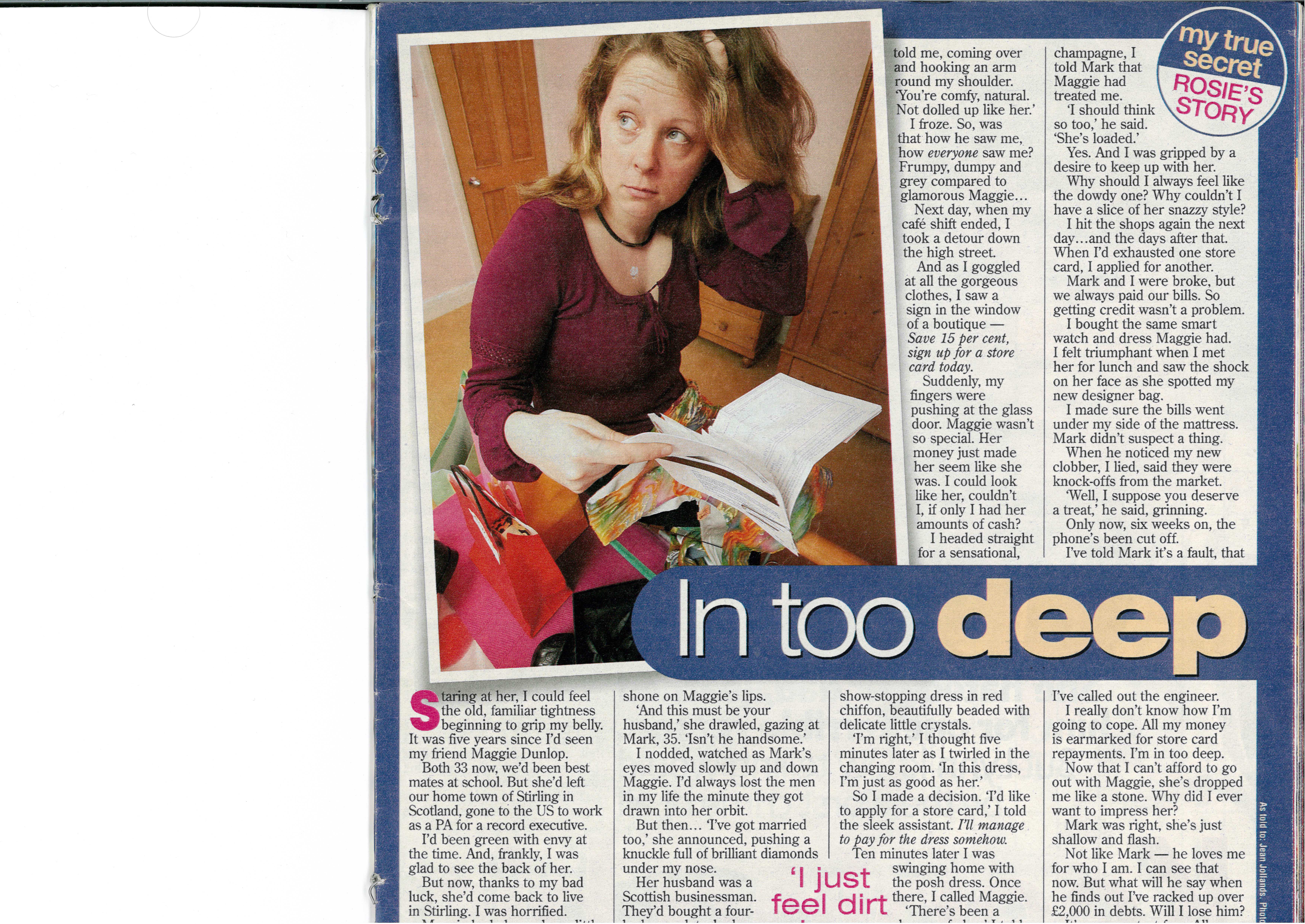 One editorial photo shoot I did for Lees People – playing the part of a housewife in debt – note the ‘gaunt fearful look’