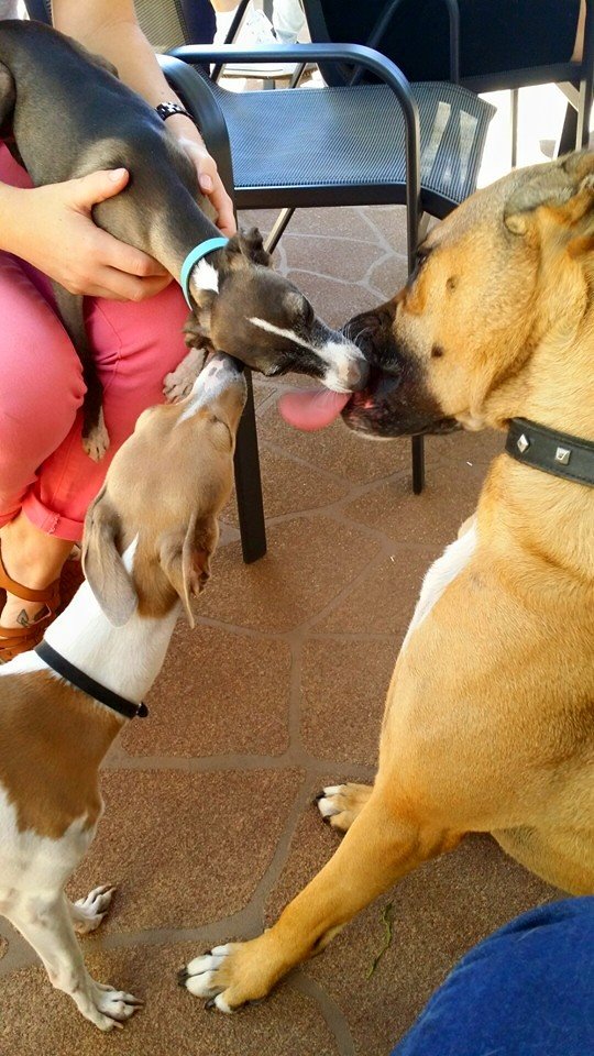 Normally there would be squealing when Brutus and Vader arrived as the girl dogs enjoyed having bigger dogs to flirt with and they saw Brutus as an Iggy anyway as he tried to make himself as small as them.