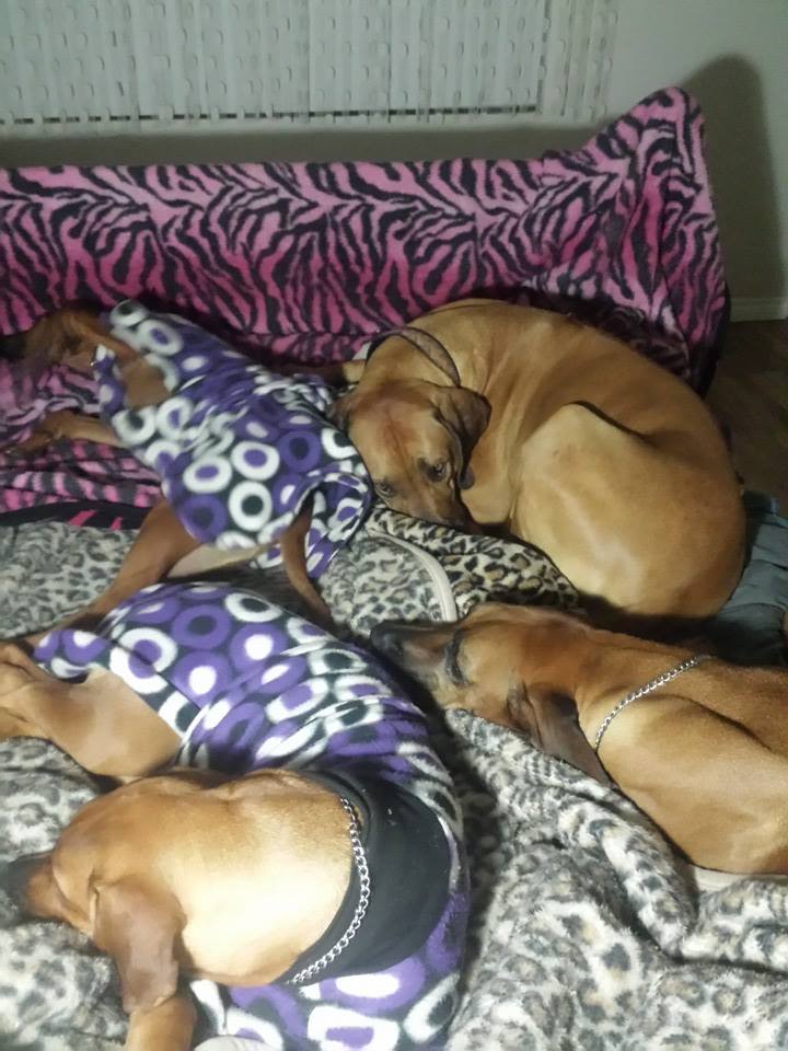 All the dogs were totally exhausted, having been fed and watered and now tucked up in their beds, they were sleepily discussing the days events.