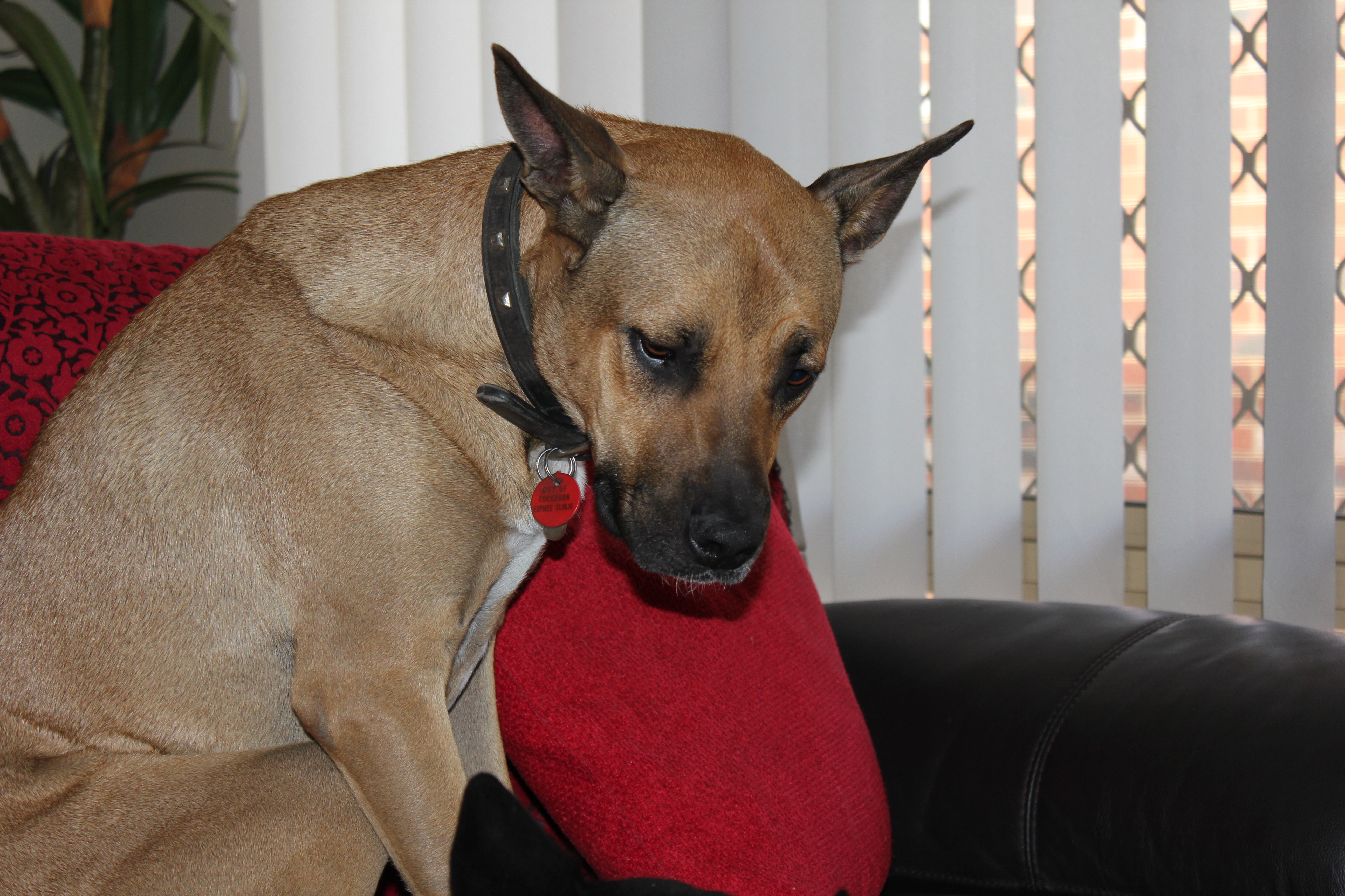 ‘You dogs are so childish!’ Kath the greyhound snapped and then took her bone and jumped up on the sofa to relax.