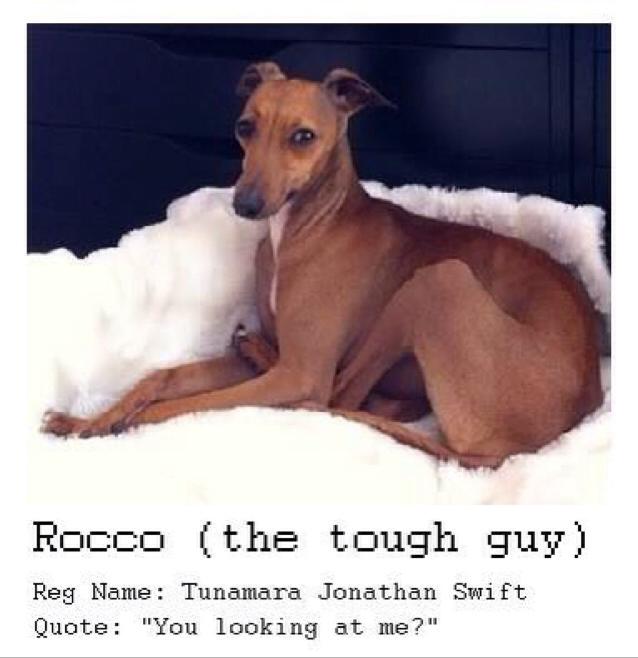 Rocco was horrified to be met with the sight of a beautiful blue/fawn and white Italian greyhound puppy of about 8 months old. And like all Iggy puppies, she spoke fast while asking a plethora of questions and changing the subject several times in the process.