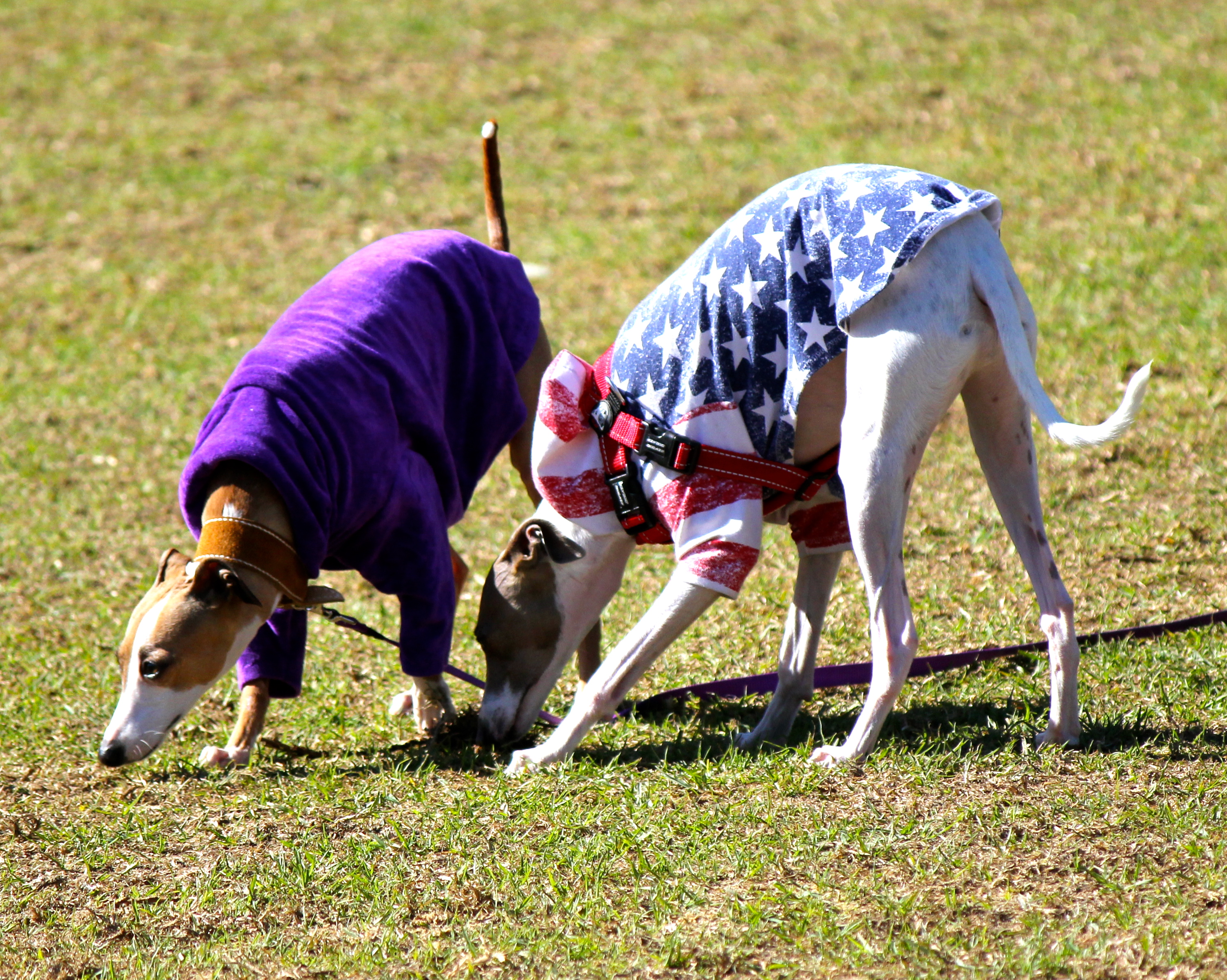 Meanwhile, the Italian greyhounds were heatedly discussing the fastest times; Pippin was looking rather serious with his clipboard and stopwatch, which was hooked to his collar and was nearly as big as him. Checking Mouse’s time records against the other dogs, Pippin nodded approvingly at the speeds of Mighty Mouse and looked around to see if he could see her to discuss the results.