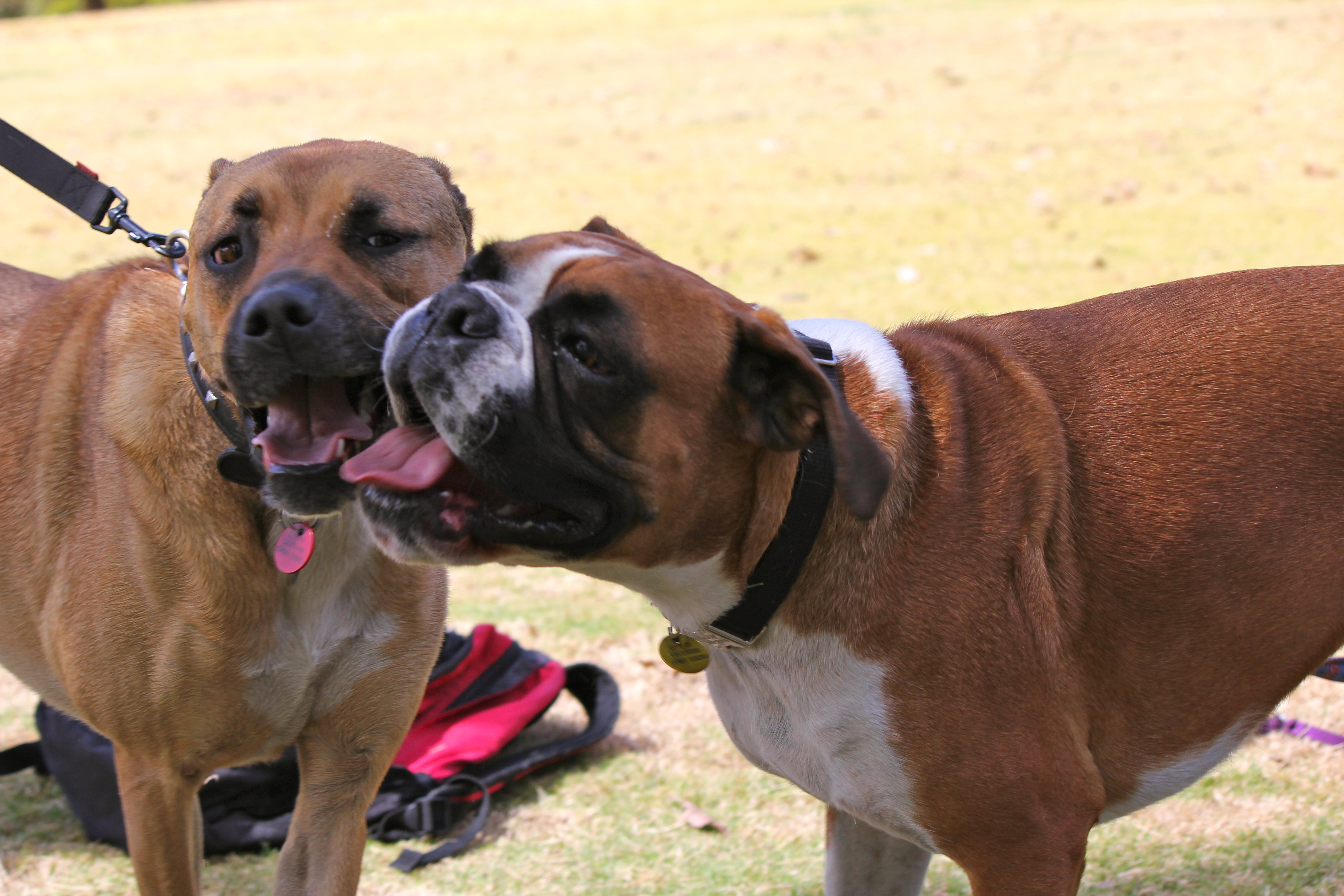 A tan and white self-important looking staffie was chowing down on some doggy treats in a bag. Delving his snout into the packet, he triumphantly pulled out a kangaroo flavoured biscuit before offering Bowie one. “Fancy one Bowie? Who are we waiting for?”