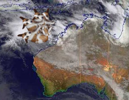 Residents in Karratha and Dampier (to name but two areas) have been told to prepare their homes for storms and winds.  Dogs have been asked to bury their bones and cats told to hide their fish, kennels have been glued to the ground although one dog with large ears has been reported flying through Dampier despite several attempts to catch him.