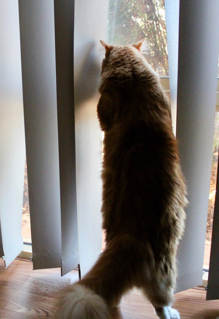 Kevin went to the door and took a peak out of the window to see who it was. I mean, it could be a cat napper or something, maybe someone wanting to steal him and use his fur coat as a pair of gloves – it could happen you know.